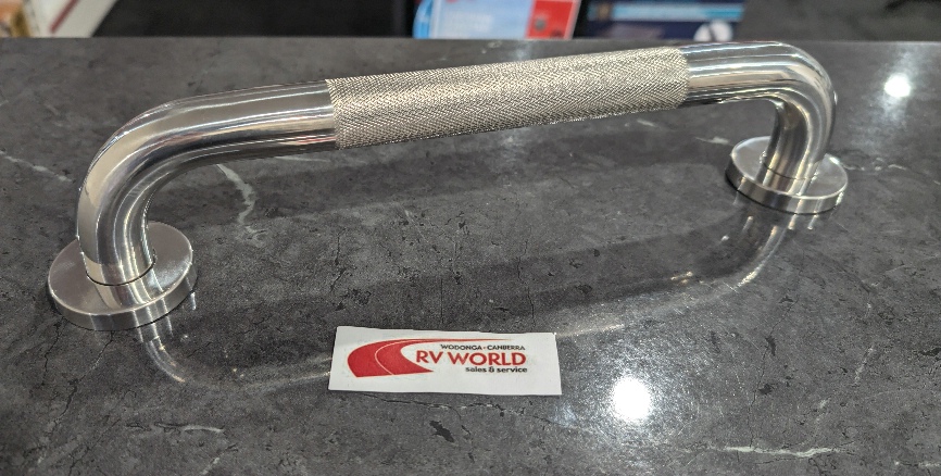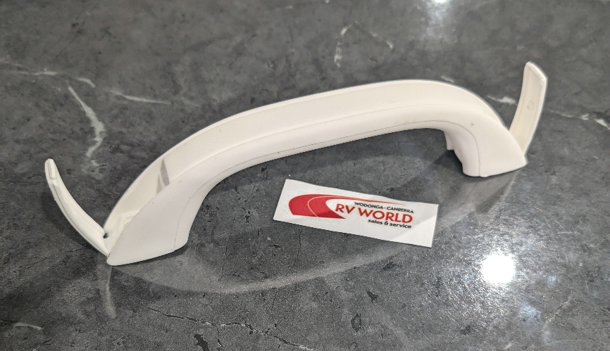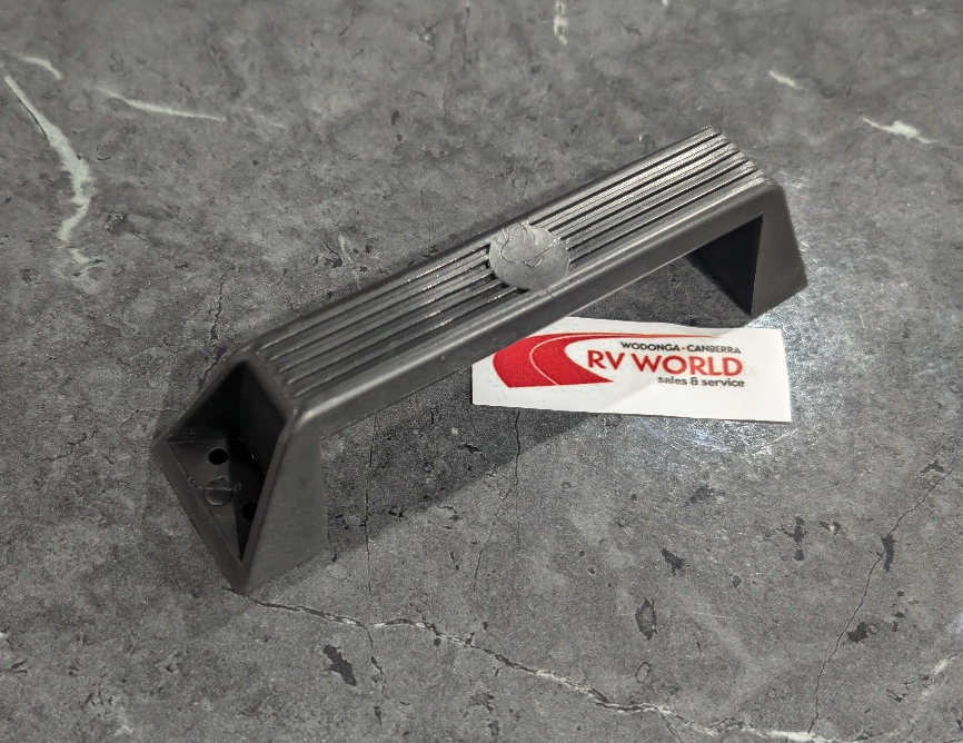 A strong plastic grab handle suitable as a pull handle on the corner of caravans or Camper Trailers