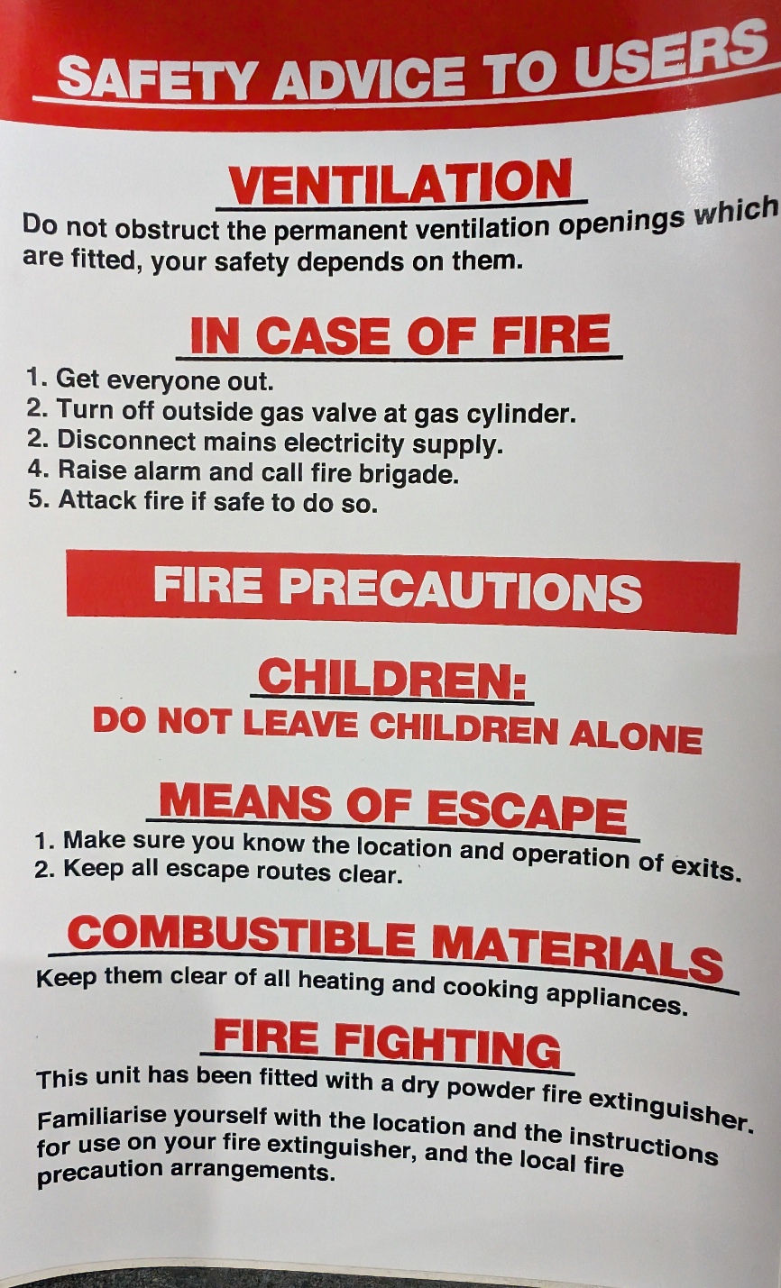 Label - Warning, Ensure ventilation when cooker is in use. Do not use for space heating.