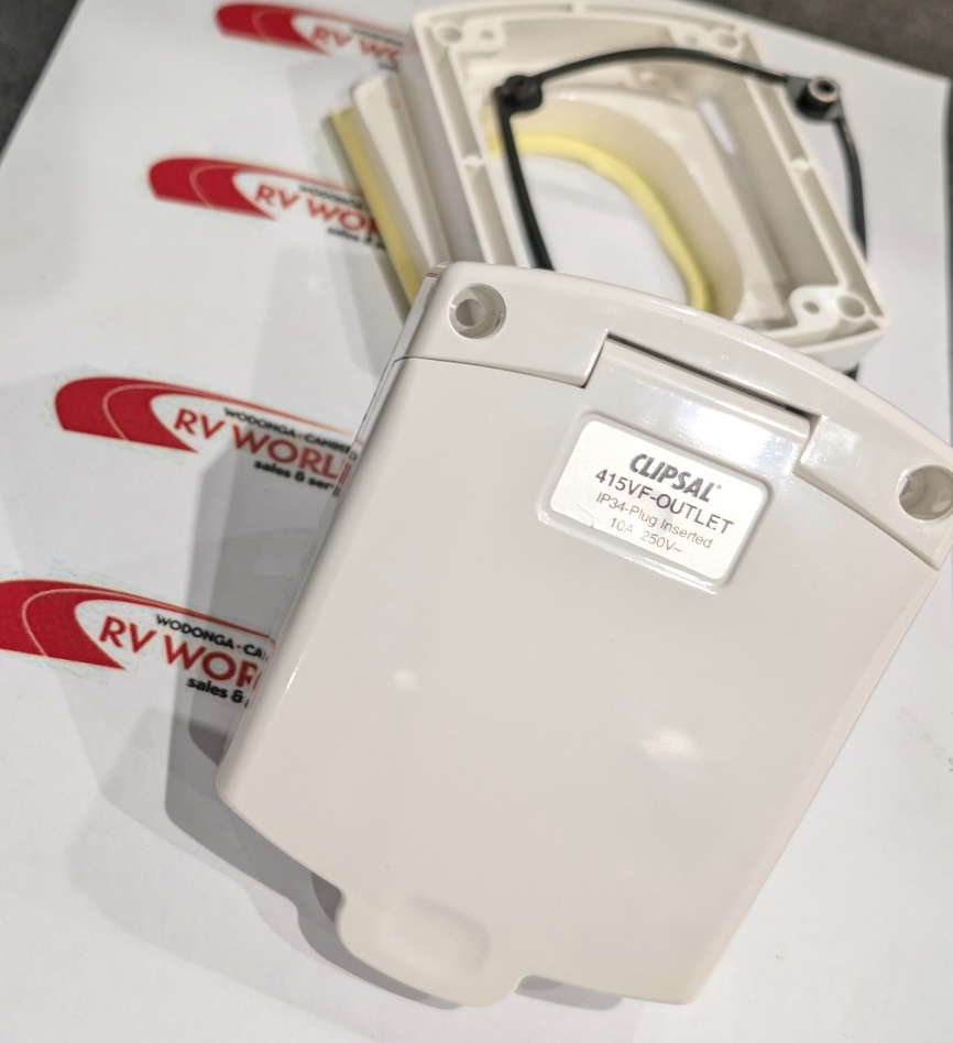 The Australian RV External Power Inlet is a specialized component designed for caravans, RVs, and motorhomes, providing a designated point for external power connection. This inlet is designed to accommodate a 240V 15amp power supply, allowing for a reliable and secure electrical connection while camping or parked at a site with power hookups.